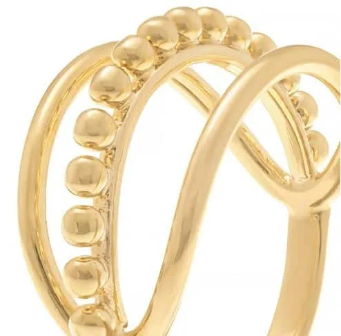 Anel da Rommanel composto por 3 fios na parte superior sendo o fio central com esferas lisas. – Cód 512263